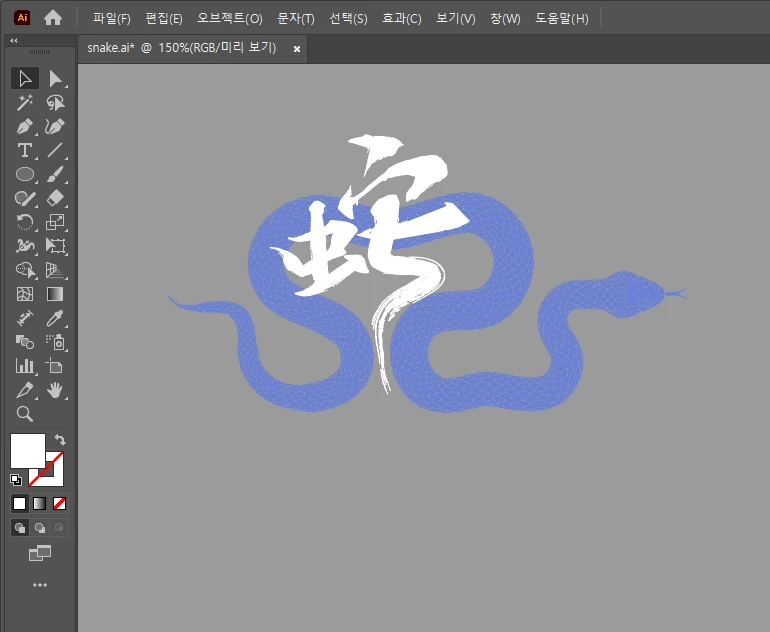겹치는 효과를 잘 보이도록 하기 위해 부분선택 툴로 획이랑 크기를 수정했습니다.