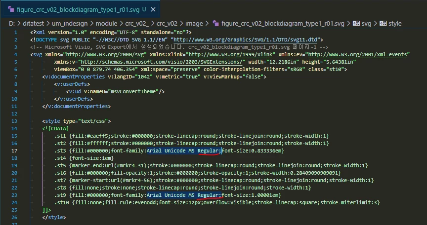 MS VISIO 2016에서 PC에 설치되어 있는 "Arial Unicode MS" 폰트를 적용하여 편집한 후, *.svg 확장자로 export하였습니다.