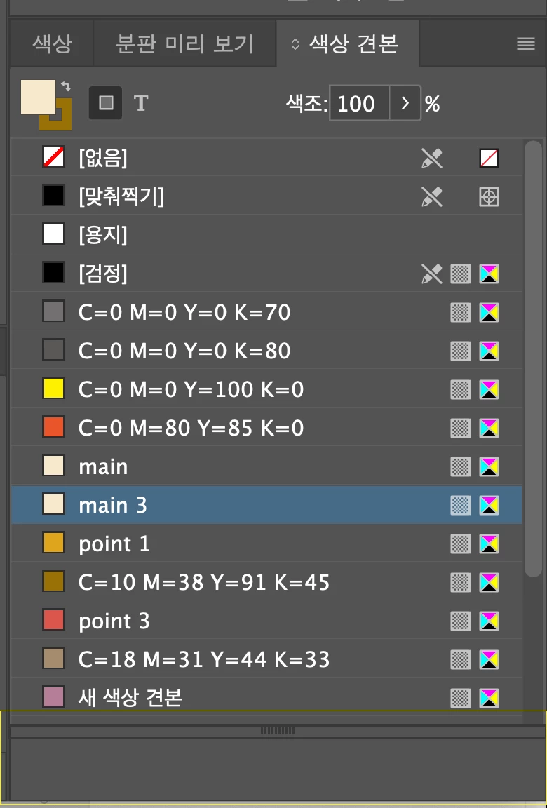 색상패널 아랫부분에 휴지통 아이콘이 사라졌습니다