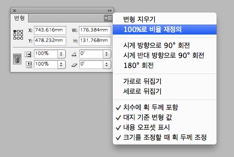 인디자인에서 텍스트박스를 작고 사이즈를 늘렸는데 폰트 크기 표시되는 란에 7pt(14) 이런형식으로 표기가 됩니다.. 여기서 7pt는 키우기전 사이즈이고 괄호안의 14가 늘리고난후 사이즈인데 이형식을 풀고 현재 포인트인 14pt만 표기되게 보는 방법이 어떻게 되나요...?