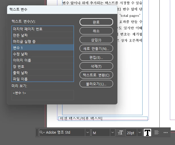 인디자인에 텍스트변수가 안됩니다.