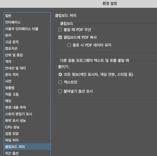 일러스트에서 텍스트(여러개)를 복사해서 인디자인으로 붙여넣기 하려고 하는데