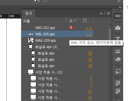 다른 업체에서 받은 파일을 열어보니, 링크패널에 사용되지 않는 이미지가 표시됩니다.