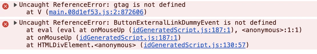 이 증상이 발생하는 링크는 블리시 온라인(Publish Online) 내보내기로 했을 때, ‘다운로드 링크’일 때만 발생합니다. 콘솔 창을 확인했더니 오류코드가 떠 있는데, ‘BtoonExternalLinkDummyEvent’ 함수를 찾지 못 해서 난 오류 같습니다.