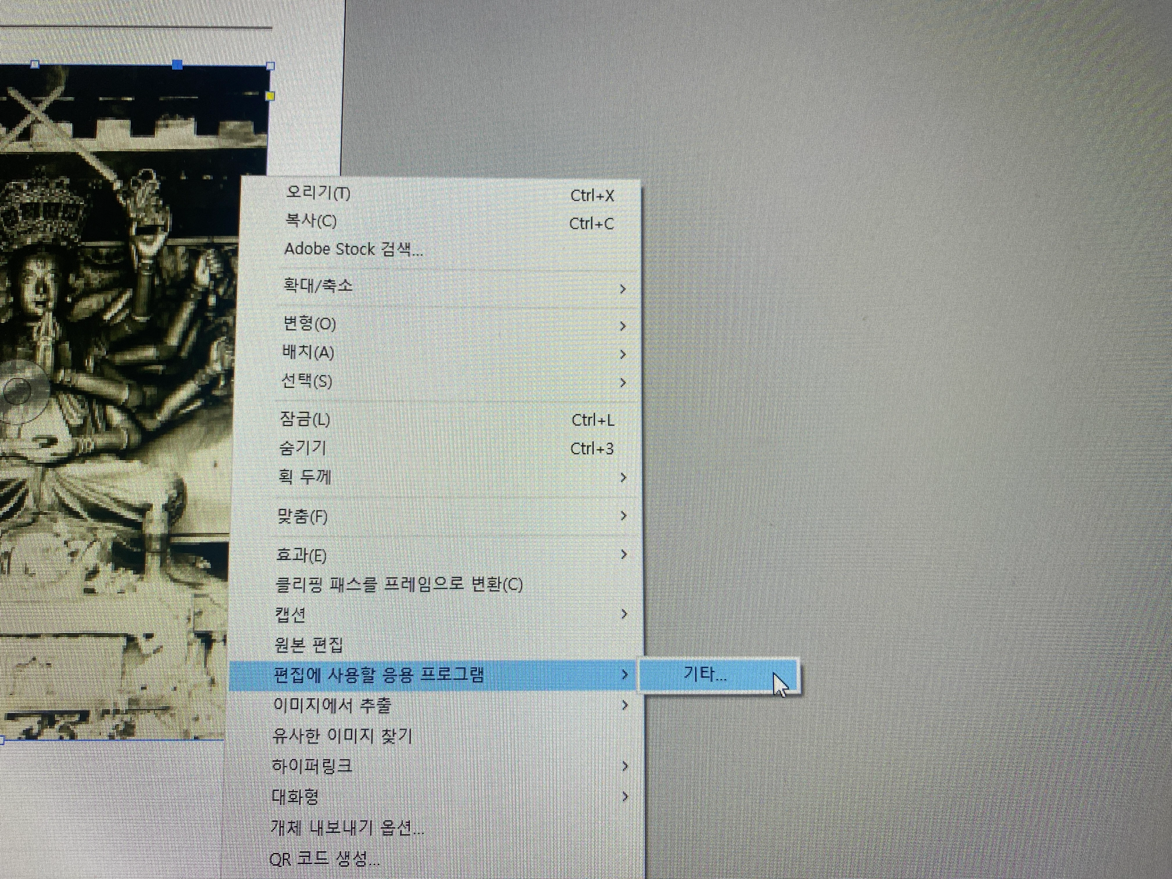 편집에 사용할 응용프로그램에서 원래는 기타말고도 기본으로 포토샵, 일러스트 등 여러 프로그램이 떴었는데 다시 까니 기타만 뜨고, 계속 기타로 들어가 포토샵을 선택해줘야 합니다.