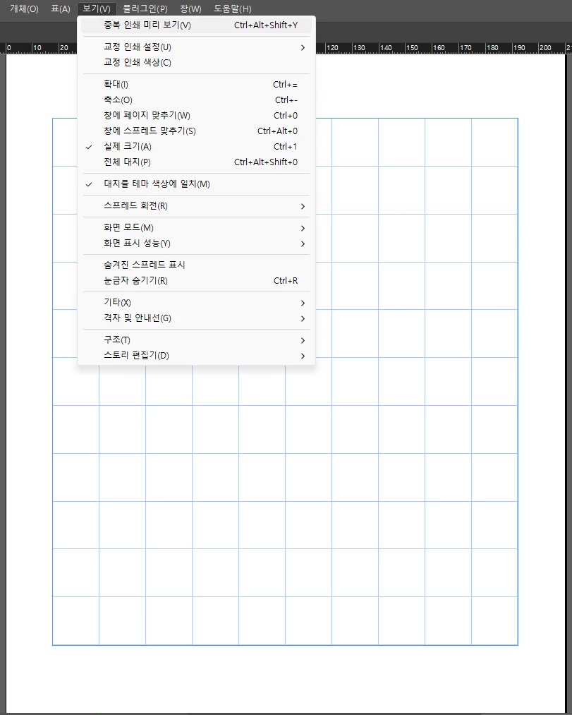 상단의 중복인쇄 미리보기를 눌러보시면 해당 선은 더이상 표시되지 않는것으로 확인 할 수 있습니다.