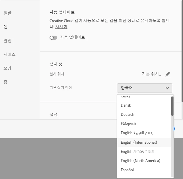 우선 이미 설치된 한글판 인디자인 베타를 삭제하고 나서 크리에이티브 클라우드 데스크탑을 열어서