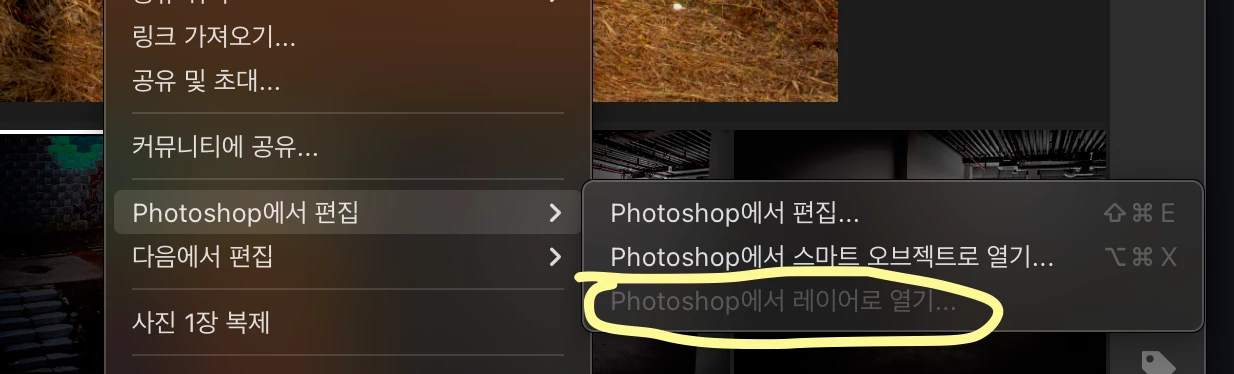"Photoshop에서 레이어로 열기"를 선택할 수 있게 됩니다.