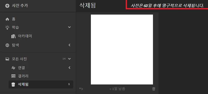휴지통으로 옮겨진 사진까지요. ㅠㅠ