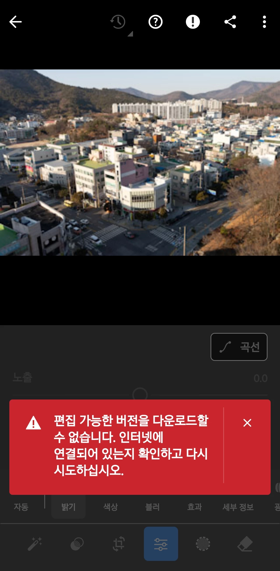 휴대폰으로 올린 사진을 휴대폰으로 보정하려고 하는데 인터넷 없이는 안된다고 뜨는 건 이해가 잘 안되네요.