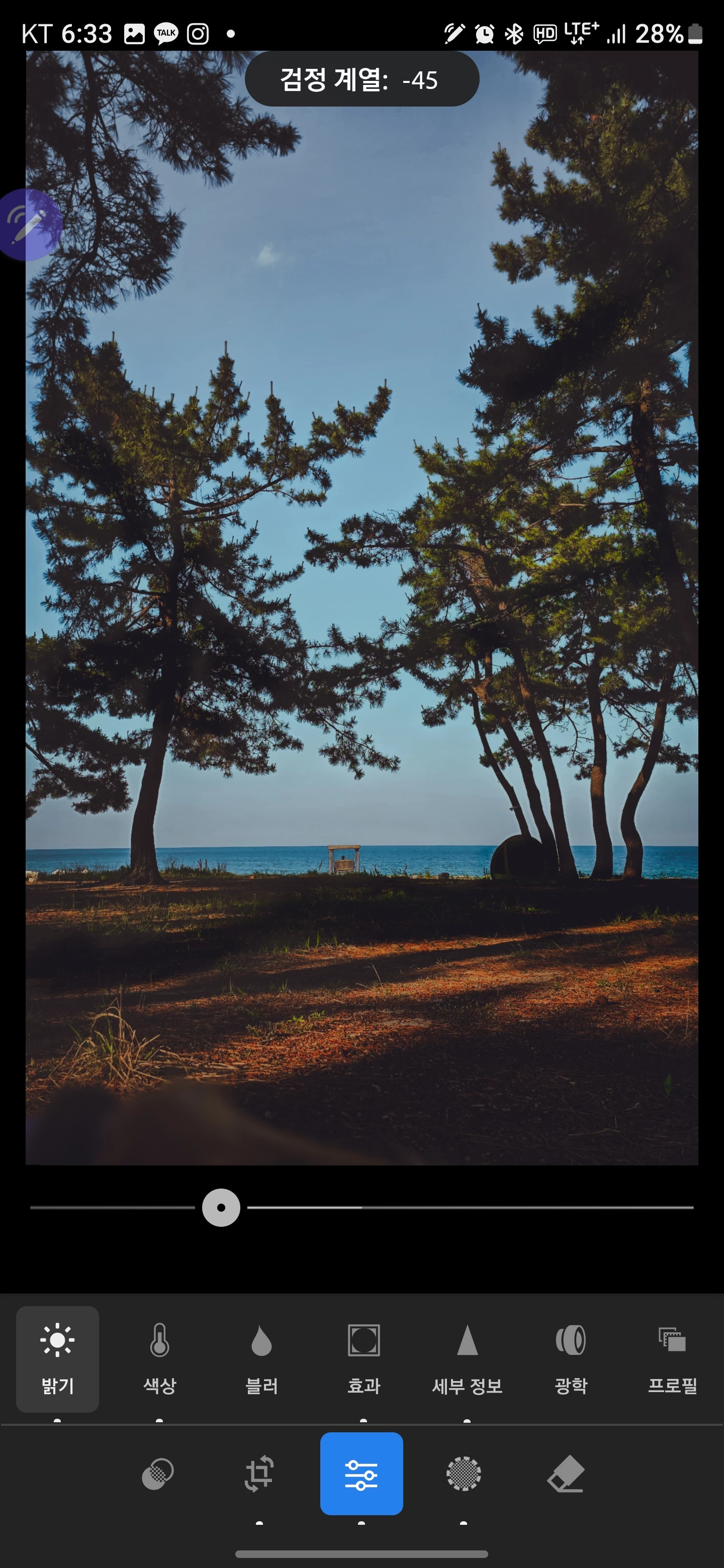 색상이나 밝기 노출 등을 편집 하는 과정에서