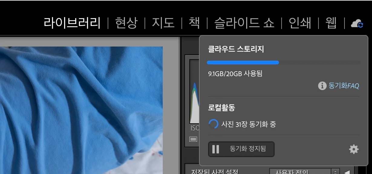 라이트룸 클래식에서 동기화 폴더에 넣은 뒤 서버로 업로드가 되지 않고 계속 로딩 상태 입니다 그저께까진 잘 되던게 안되네요... 잘 됐던 사진으로 진행 해봐도 안되구요
