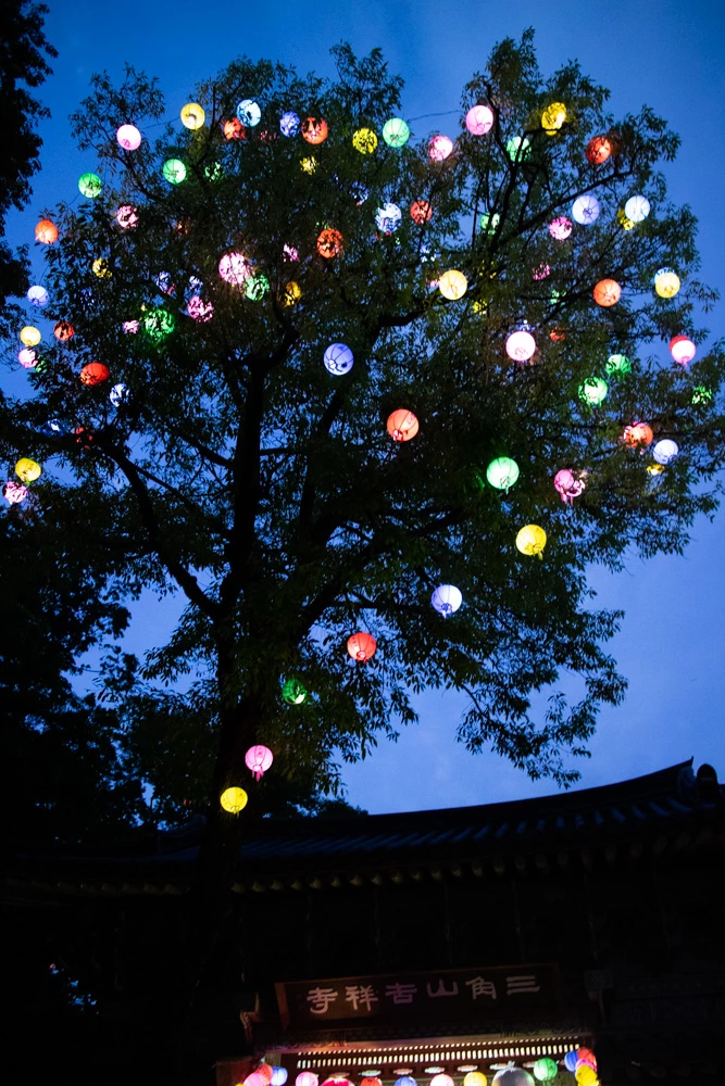 원본 사진을 라이트룸에서 단 30초 만에 후보정한 사진입니다. 일주문도 잘 보입니다. 나무에 달린 연등도 화이트홀이 생긴 부분은 빼고 정갈하게 담겼습니다. 이래서 사진은 후보정을 해줘야 합니다. 참고로 후보정을 염두에 둔다면 RAW 파일로 촬영하세요. RAW 파일이 사진 데이터량이 많아서 후보정할 때 아주 좋습니다.