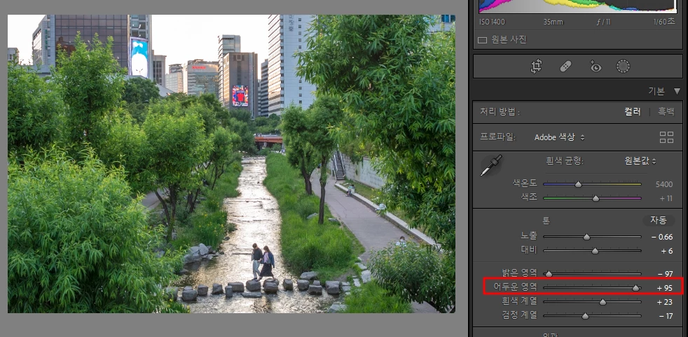 더 정밀하게 보정하고 싶으면 좀 더 다양한 작업을 해야 합니다만 저 같은 블로거들은 모든 사진을 작품 사진으로 촬영하는 것이 아니고 다량의 사진을 빨리 보정해야 하기에 이 정도만 하고 내보내기로 마무리를 합니다. 따라서 블로그나 SNS용 사진 후보정할 때는 밝은영역, 어두운영역만 조절해도 훨씬 보기 좋은 사진을 만들 수 있습니다.