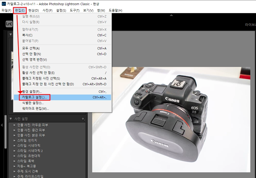라이트룸 클래식을 실행 후에 편집 >> 환경설정에 들어가세요.