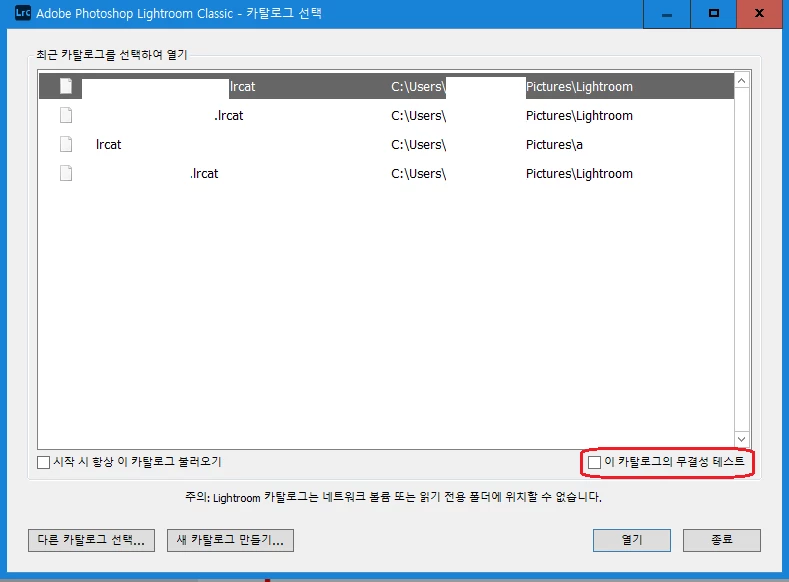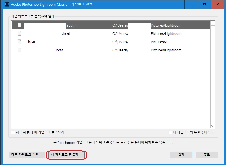라이트룸 클래식 사용 중 실행 불가 / 응답없음 / 카탈로그 오류 등의 문제가 발생했어요😥