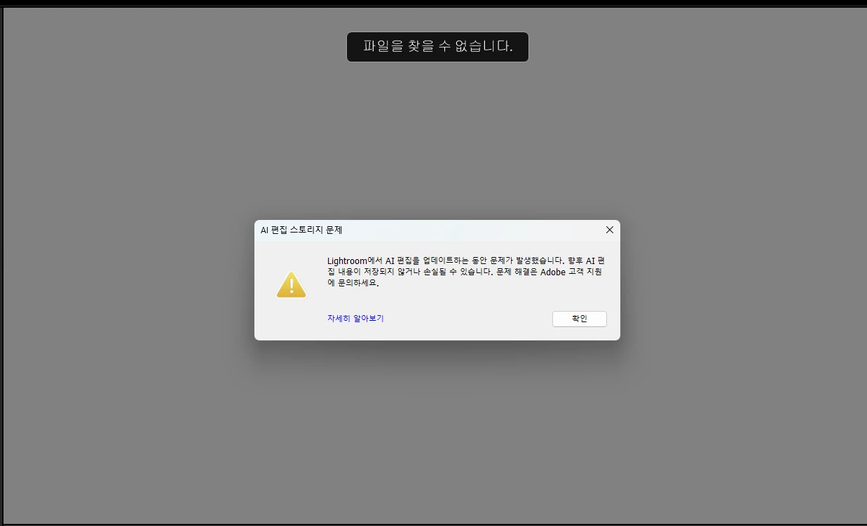 라이트룸 ai 스토로지 에러가 계속 뜹니다.