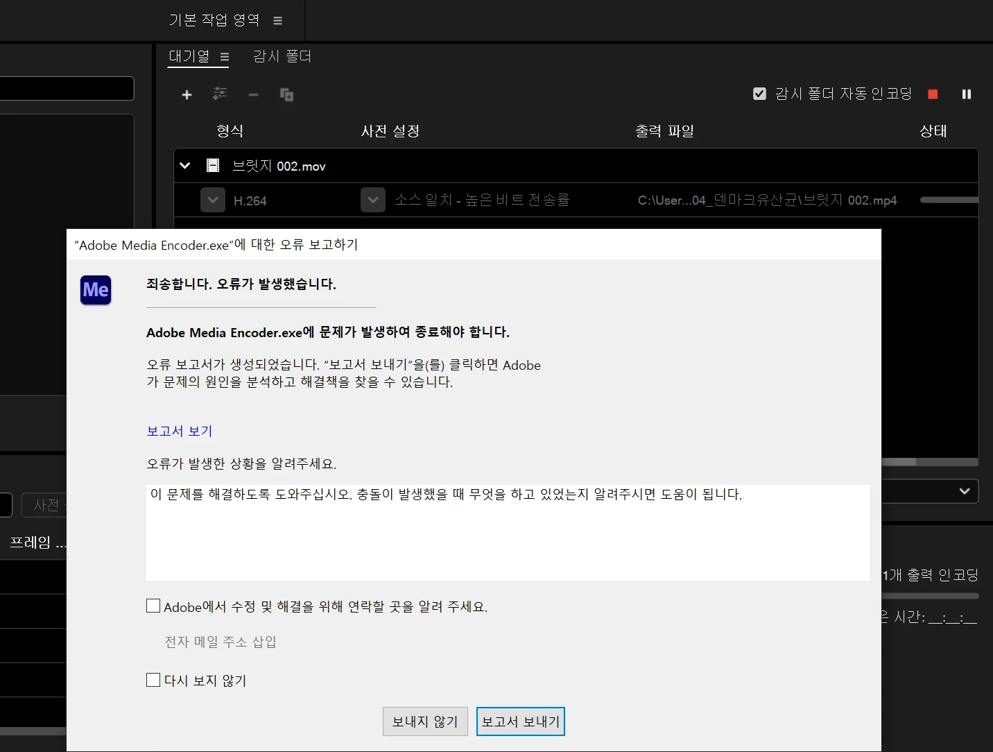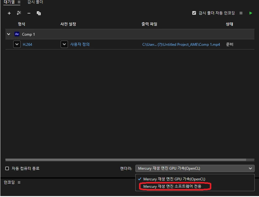 H.264로 렌더링할 경우 오디오 형식이 자동으로 aac로 선택되는데 렌더링 버튼을 누르면 오류가 발생되면서 렌더가 되지 않고있습니다. 오디오 형식을 MPEG로 변경할 경우에만 H.264로 렌더링 됩니다.