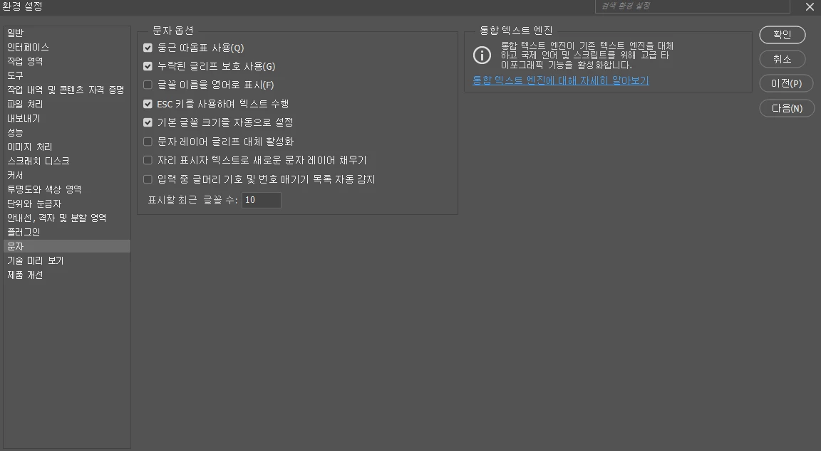 글리프 대체 활성화 체크를 풀어놓은 상태인데도,