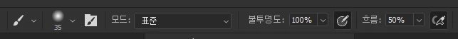 2. 브러쉬 설정에서 불투명도와 흐름을 조절하는 방법.