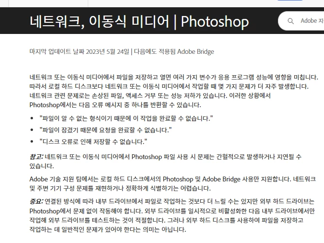포토샵 업데이트를 오늘 진행했습니다. 이후 파일을 저장하려고 하면