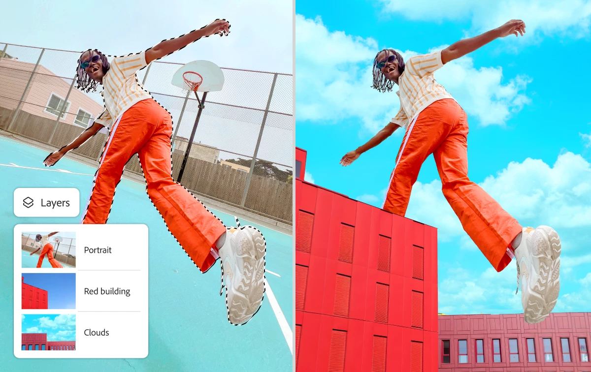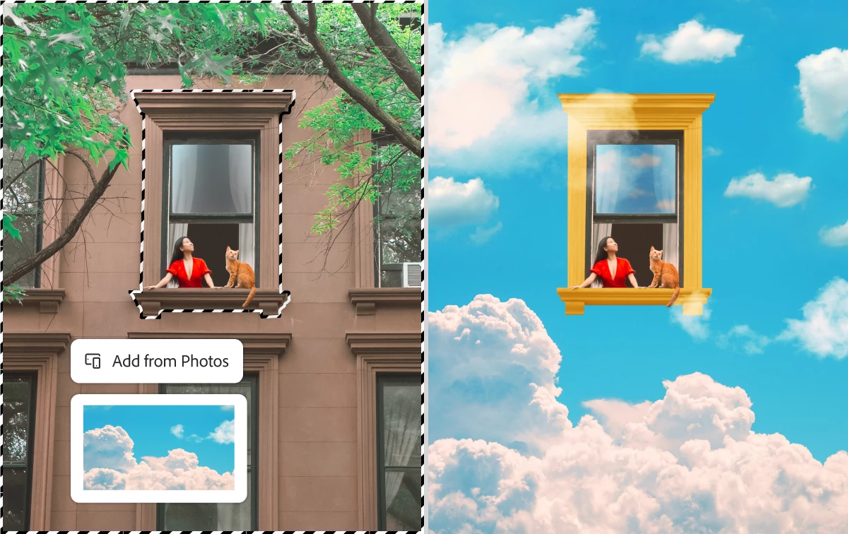 휴대전화 이미지로 배경을 쉽게 바꾸거나 생성 채우기로 AI 생성 배경을 만들거나 텍스처와 패턴이 포함된 Adobe Stock 이미지의 대규모 라이브러리 중에서 선택할 수 있습니다.