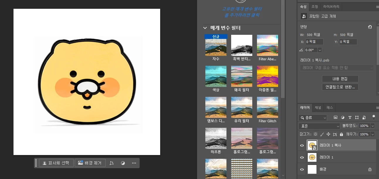 매개변수 필터 자수 _ 레이어만 복사돼요