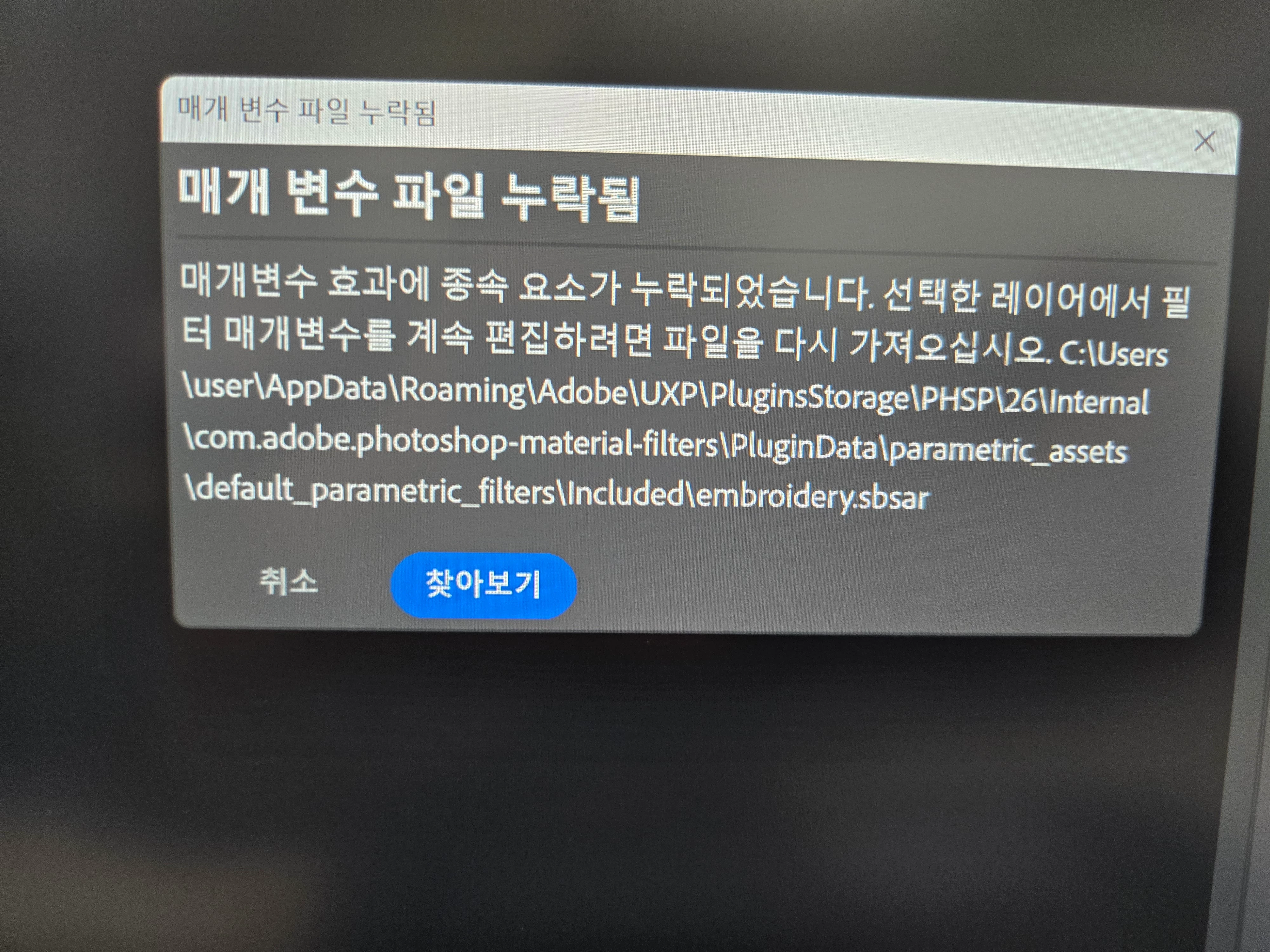 어도비 직원 분 말씀대로라면 저희 회사에 설치된 모든 정식버전 포토샵에 매개 변수 필터는