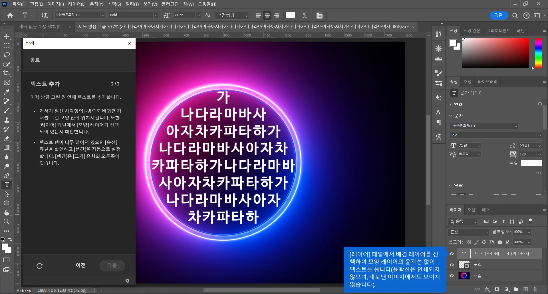해당 단계에 도움말이 이해가 안가서요. '~윤곽선 없이 텍스트를 봅니다' 라고만 나와있어