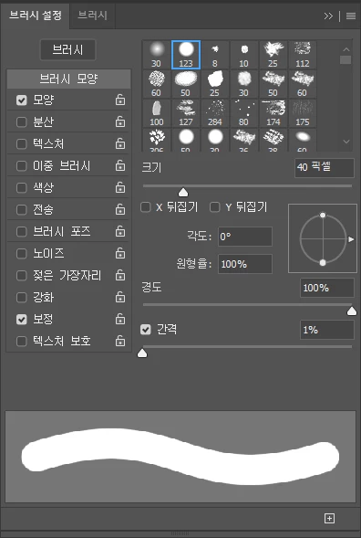 이건 선명한 원 브러시인데 이상하게 제 브러시만 매끄럽지 않습니다. 텍스처를 사용하지 않고 설정을 아무것도 하지않았음에도 매끄럽지 않습니다.. 이 브러시만 문제가 아닙니다 적용된 모든 브러시가 매끄럽지 않는 문제를 겪습니다. 문제를 어떻게 해결해야할까요?