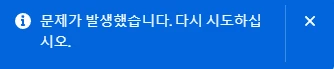 오류 메시지 alert 문구는 '문제가 발생했습니다. 다시 시도하십시오.' 입니다.