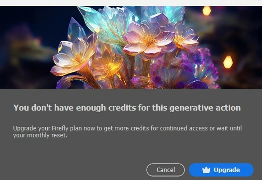 생성형 채우기 크레딧 왜 사용 안되나요?