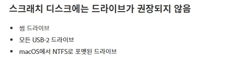 스크래치디스크에 외장하드가 인식이 안 됩니다.