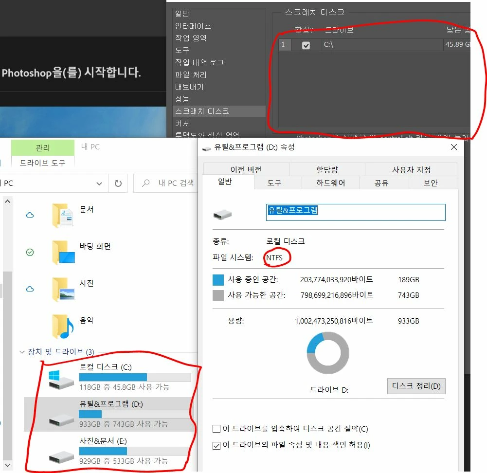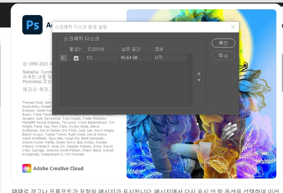 안녕하세요!! 포토샵 스크레치 디스크 설정 하려고 보니 D 드라이브가 안 뜹니다ㅠ