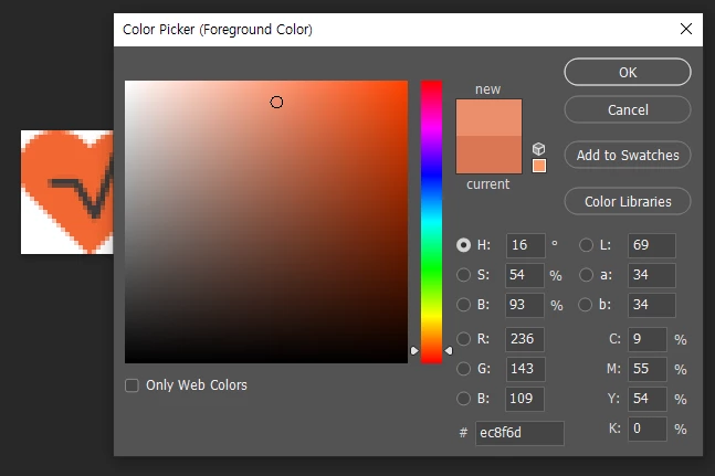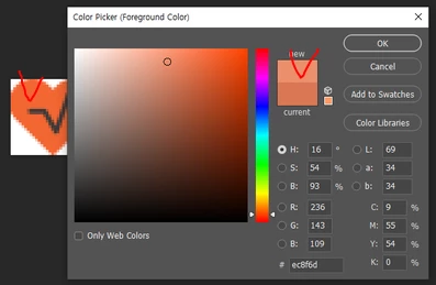 주황색을 찍었는데 아래처럼 다른색으로 찍히고