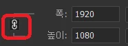 폭과 너비 사이 [체인 아이콘]이 활성화 되어있으면, 폭과 높이 비율이 고정됩니다. 이 때 너비와 높이 중 하나를 변경하면, 나머지는 자동으로 계산되어 종횡비를 동일하게 유지합니다.