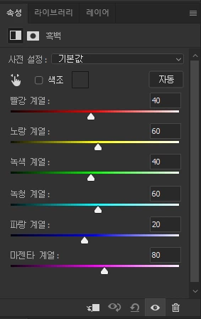 흑백 조정 레이어를 사용해 보셨나요? 포토샵에서 컬러 사진을 흑백으로 변환하는 빠르고 쉬운 방법이랍니다. 조정 레이어를 사용하면 비파괴적인 방법으로 원본을 훼손시키지 않고도 흑백사진으로 변환이 가능해요
