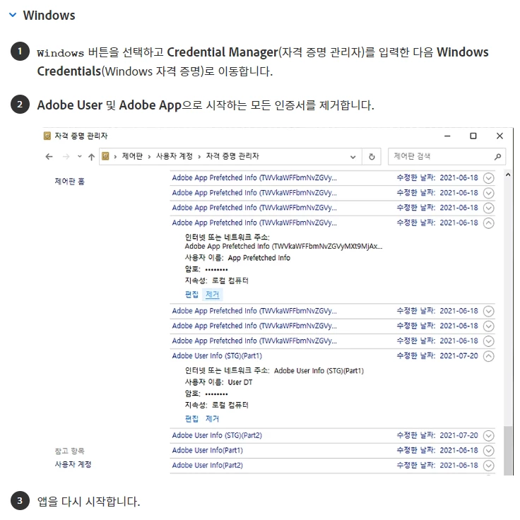 이미 클리너툴과 Adobe폴더 수동 삭제도 진행하셨군요.