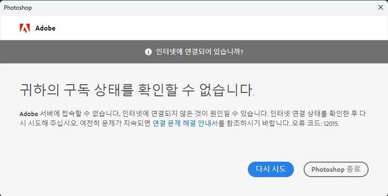 adobe 서버 접속이 차단되어있는 것으로 보여집니다.