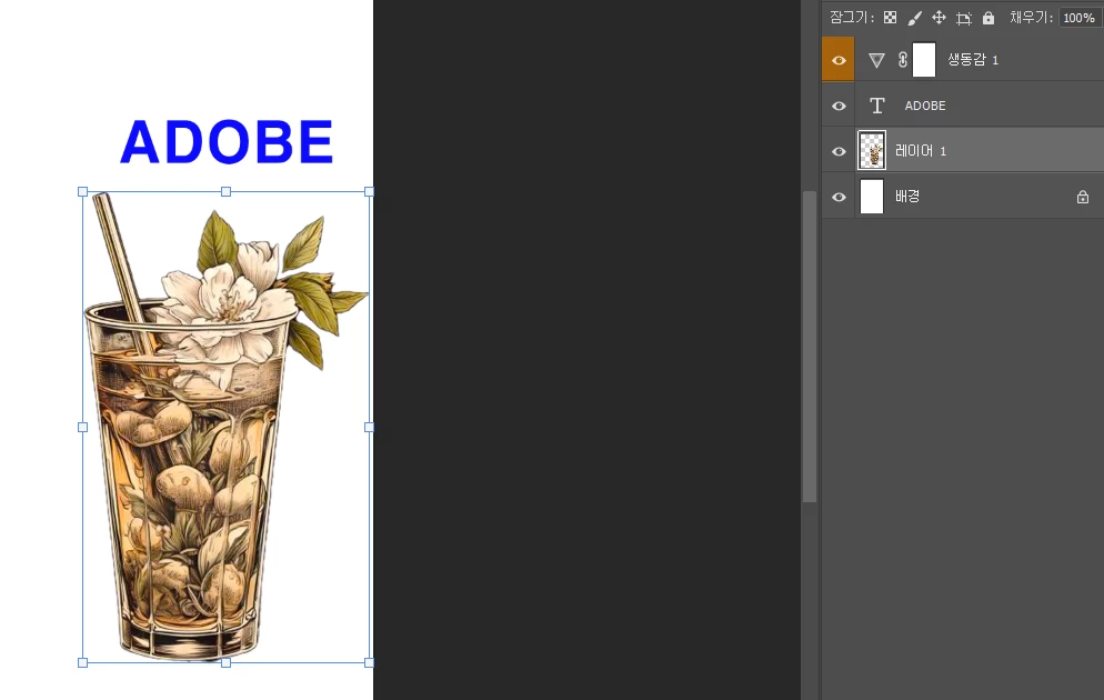 우선은 이미지나 텍스트등에 조정 레이어를 씌우고 이미지 및 텍스트 수정을 위해 레이어 선택후 움직인다면