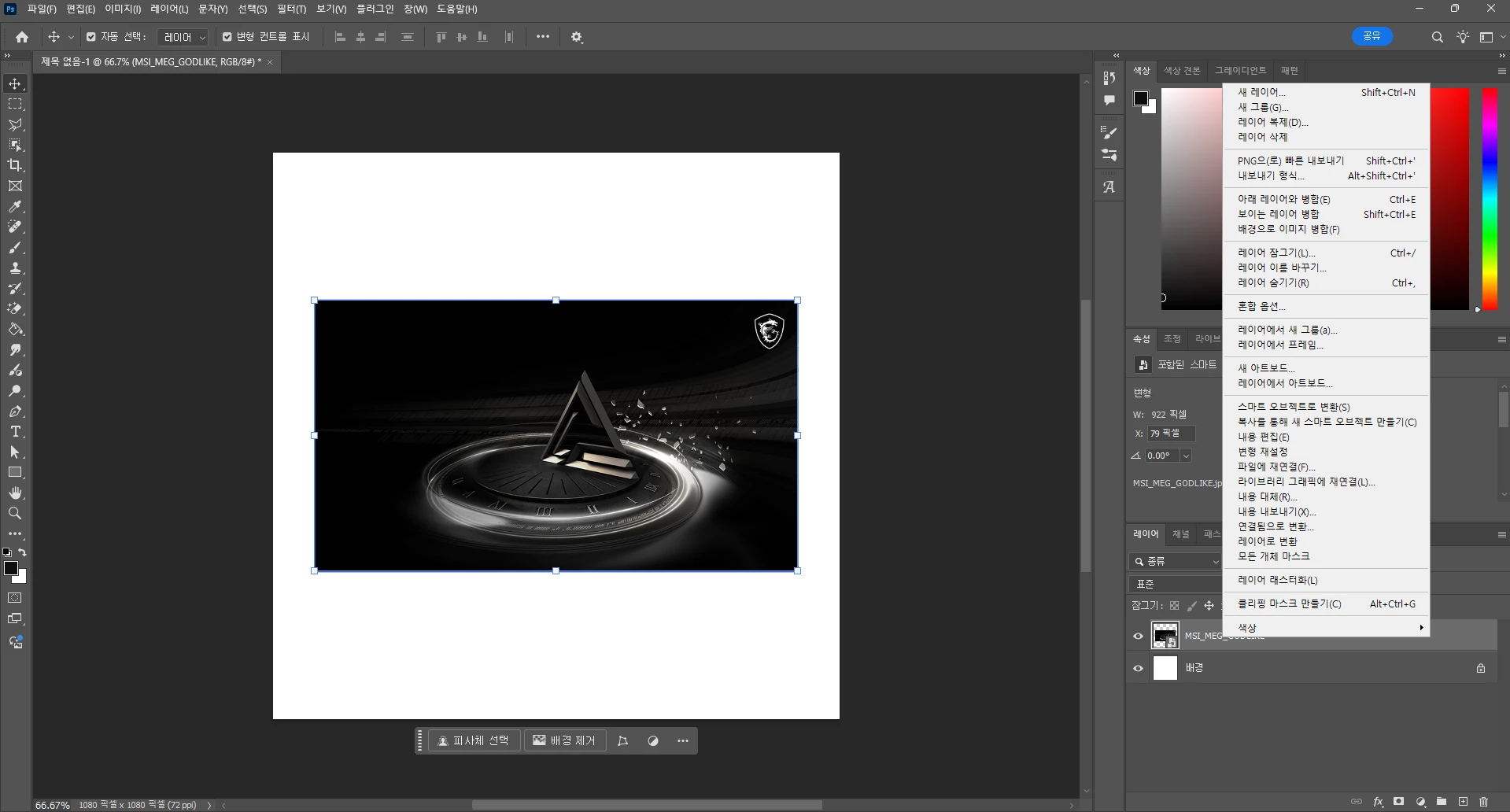지금 보여주신 스크린샷을 보시면 '스마트 오브젝트로 변환'이라는 단어가 있습니다.