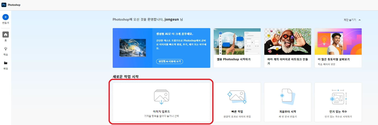 - 해당 이미지는 웹용 Photoshop의 작업 영역에서 열리게 됩니다.