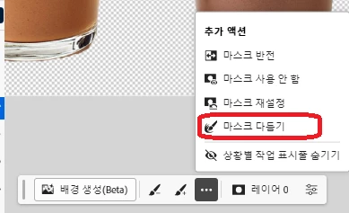 상황별 작업표시줄 "..."를 클릭, "마스크 다듬기"를 선택하세요.