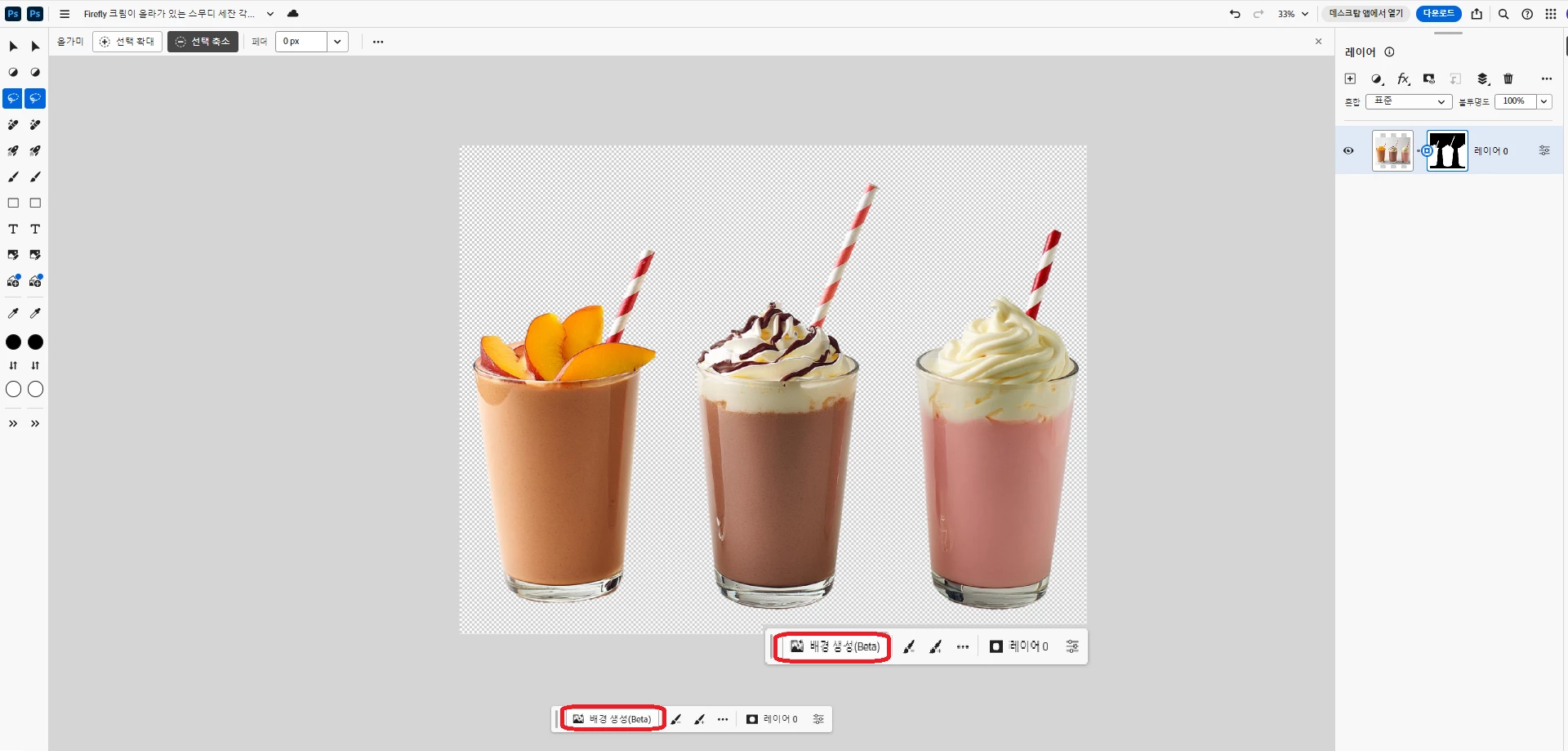 - 다음으로 상황별 작업 표시줄 에서 "배경 생성(베타)"을 선택합니다.