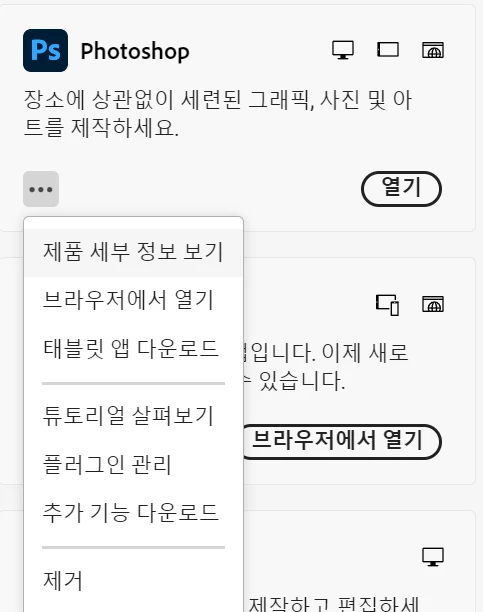 크리에이티브 클라우드에서 포토샵 다운그레이드가 안됩니다