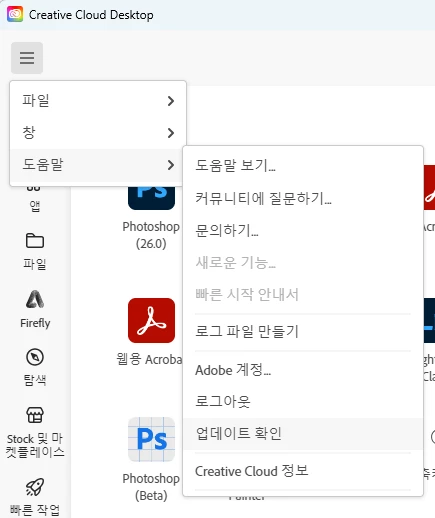 크리에이티브 클라우드 포토샵 멈춤