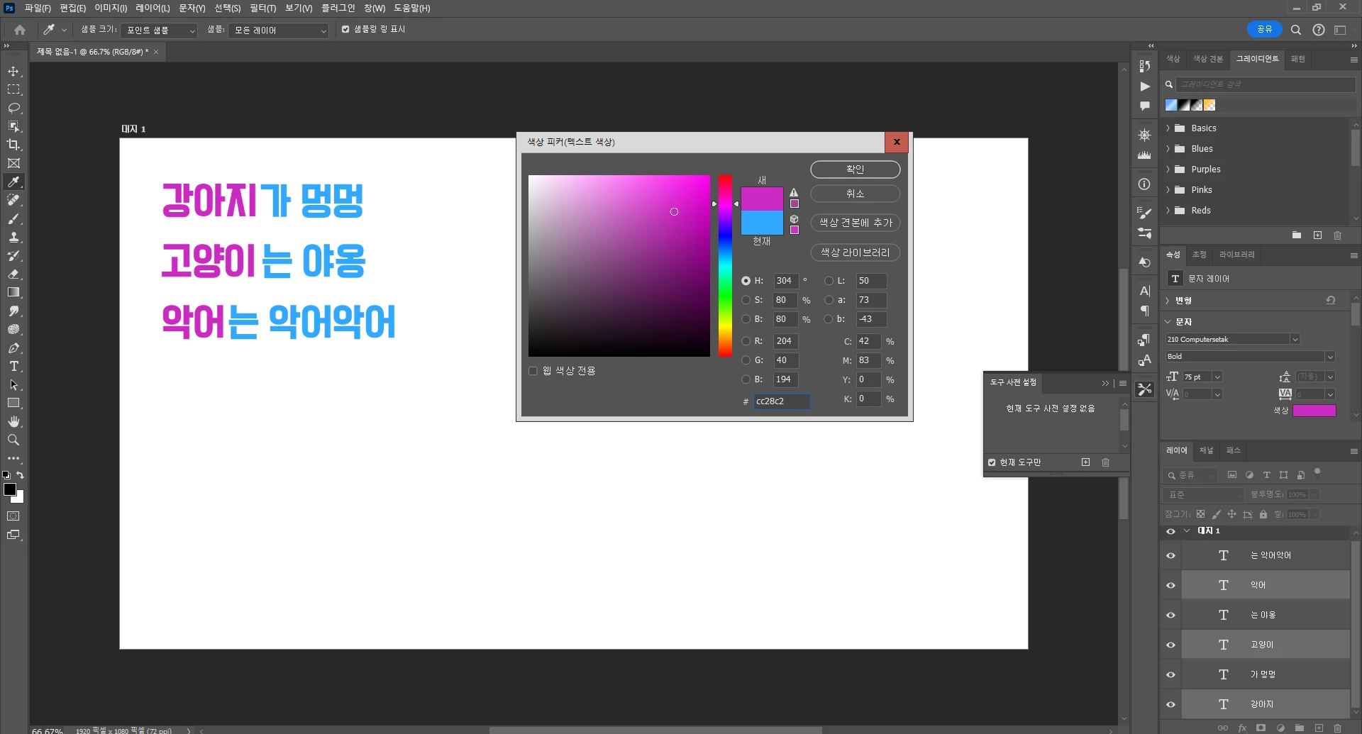 텍스트 레이어가 선택되는데 이걸 묻는게 아니실까요?