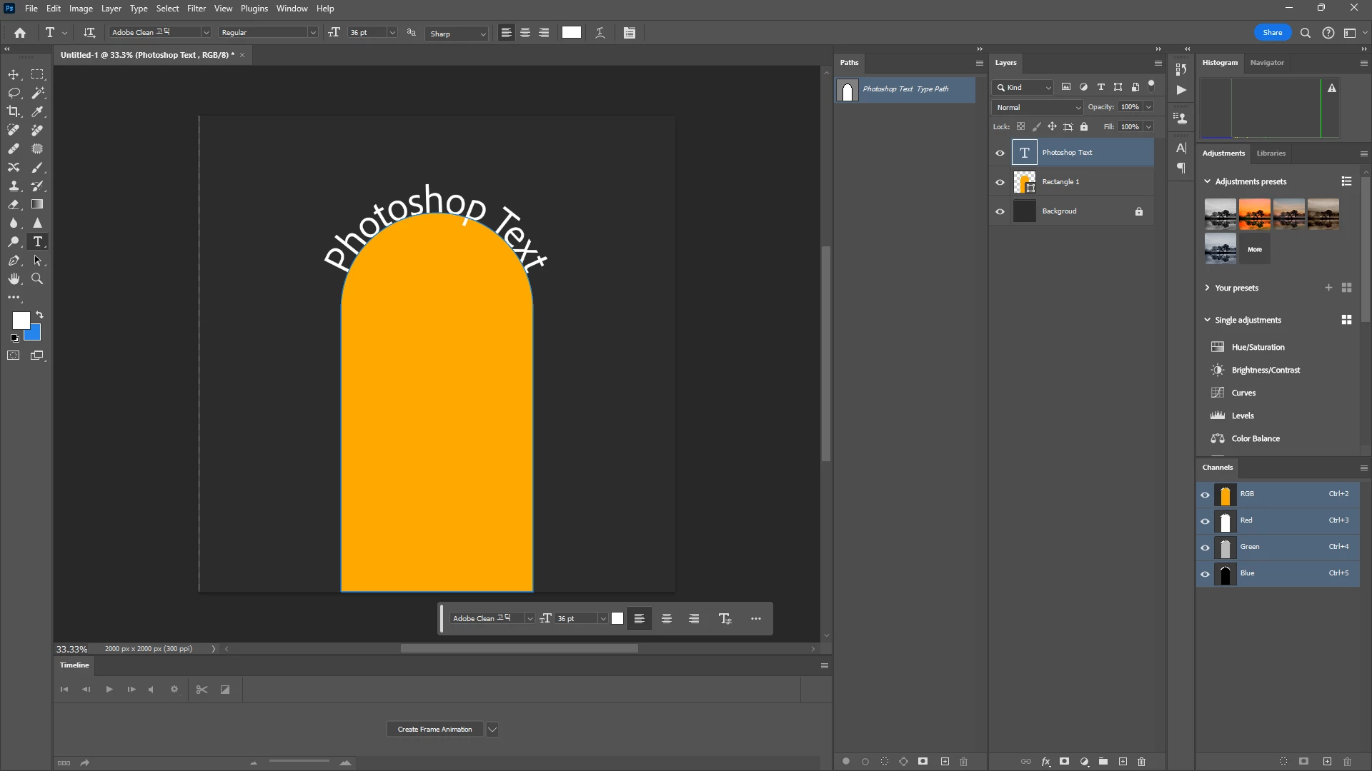 만든 도형을 따라 arc 텍스트를 입력하고 싶습니다.