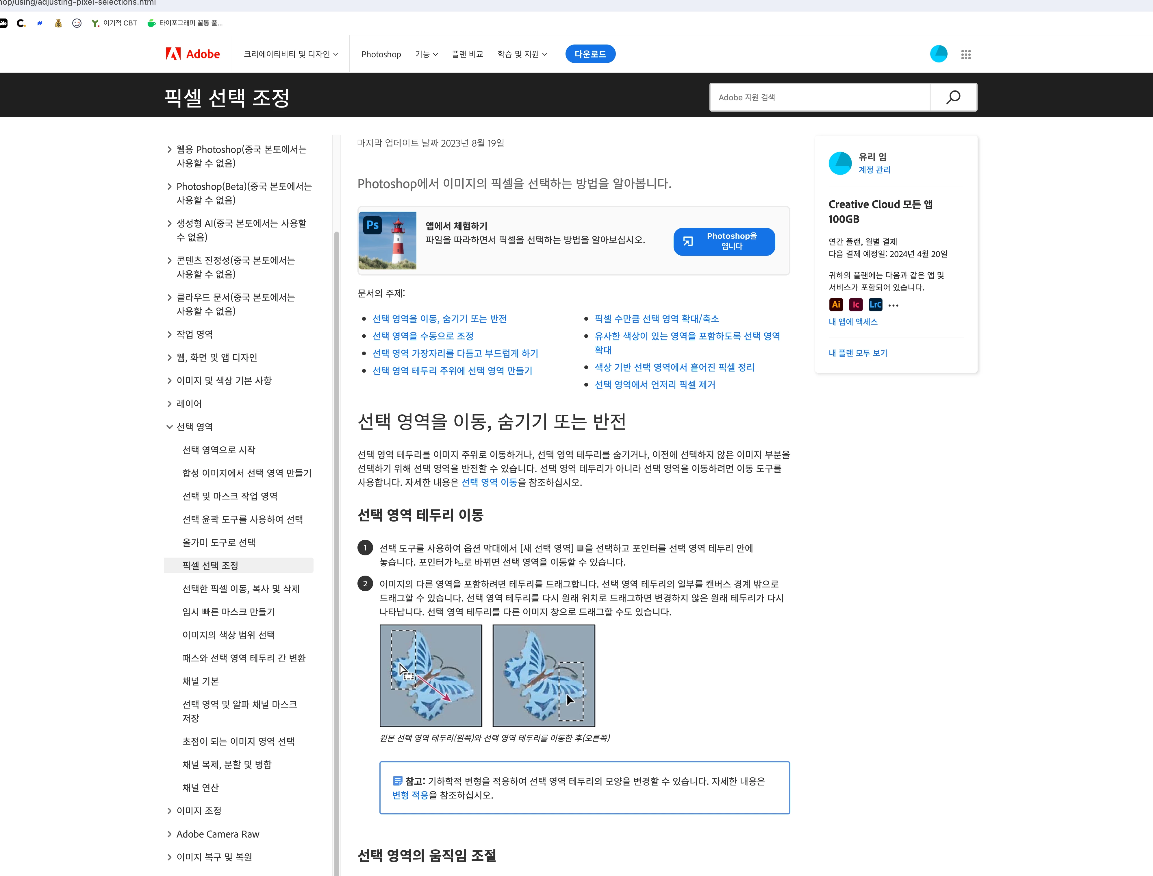 어도비 도움말 페이지가 자꾸 열리는데 어떻게 끌 수 있는지 모르겠습니다.