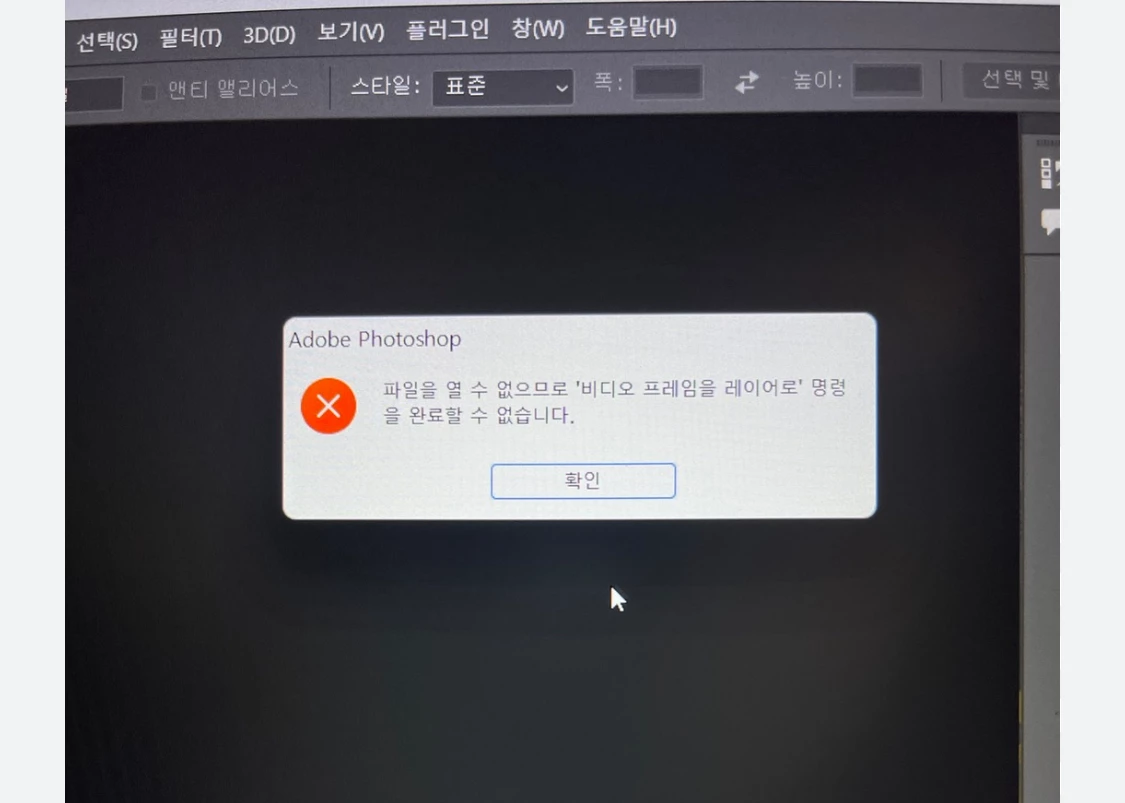 여러가지 시도를 해주셨는데 해결되지 않아 많이 답답하셨겠군요, 포토샵에서 열어본적이 있던 비디오이실까요?